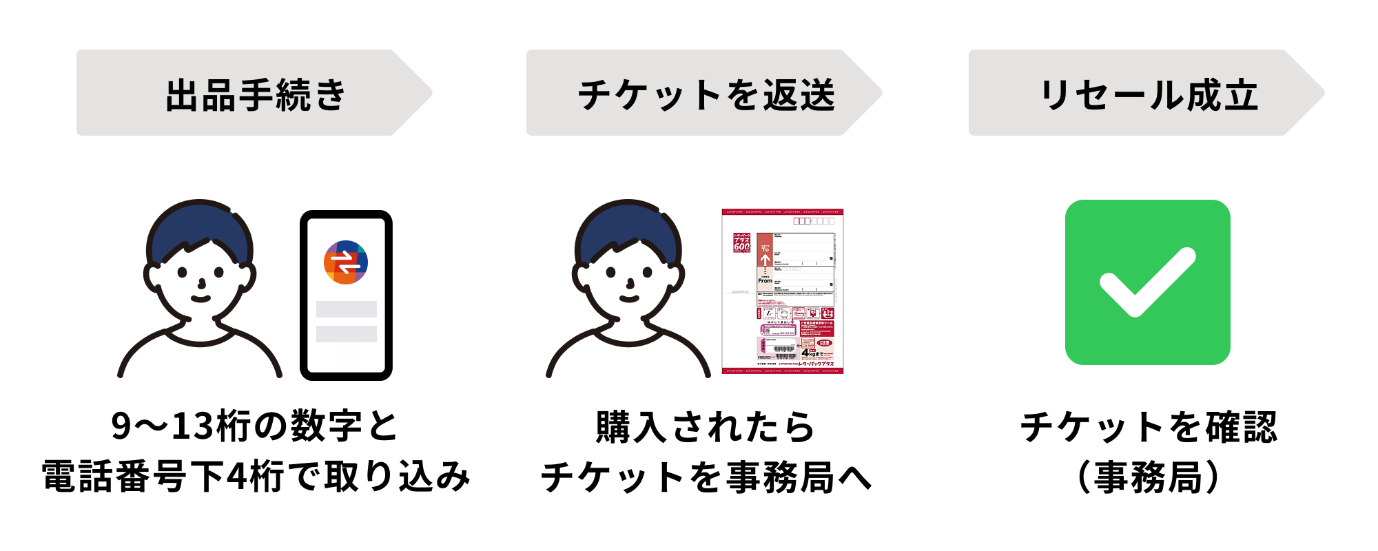 リセール成立後2日以内に紙チケットを事務局へ送付、ならびに送付後に追跡番号の登録をお願いします※