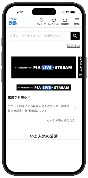 ぴあIDでチケットぴあにログインし、「Myチケット」ページにアクセスしてください。