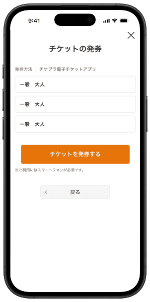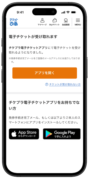 電子チケットを発券する画面になります。【アプリを開く】を押下すると、チケプラ電子チケットアプリが起動します。