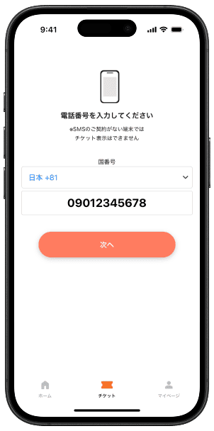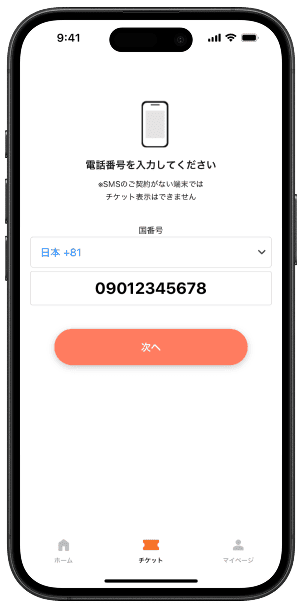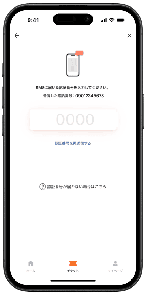 必ずご自身の携帯番号で認証してください。ご家族や友人の携帯番号で認証してしまうと、チケットの発券ができなくなります。