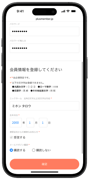 「Plus member ID登録(無料)」を選択して、会員登録手続きを進めてください。