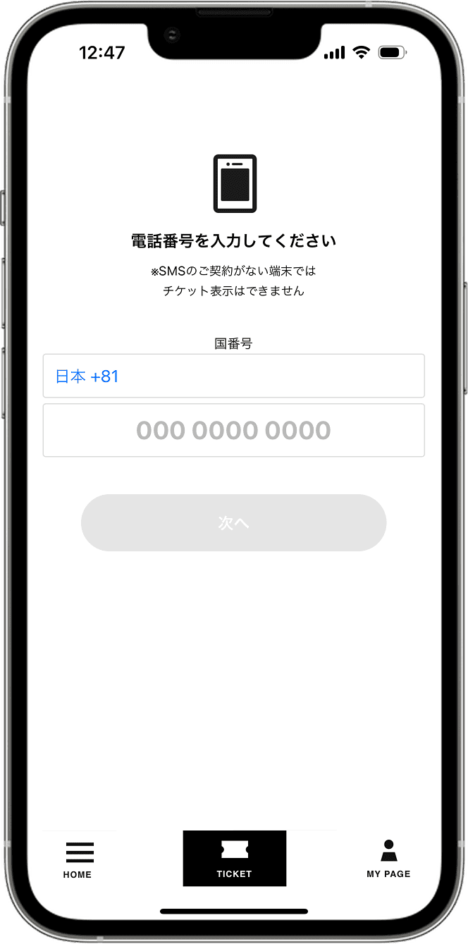 ※必ずご自身の電話番号で認証してください。ご家族や友人の電話番号で認証してしまうと、チケットの受け取りができなくなります。