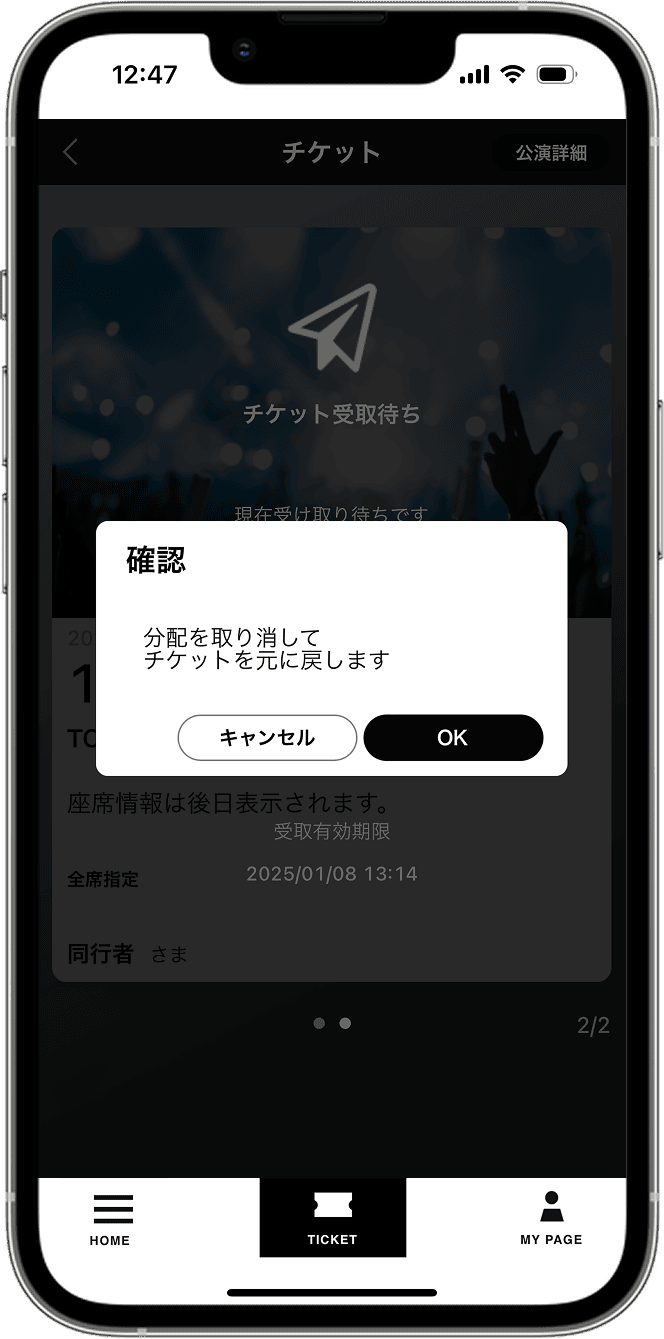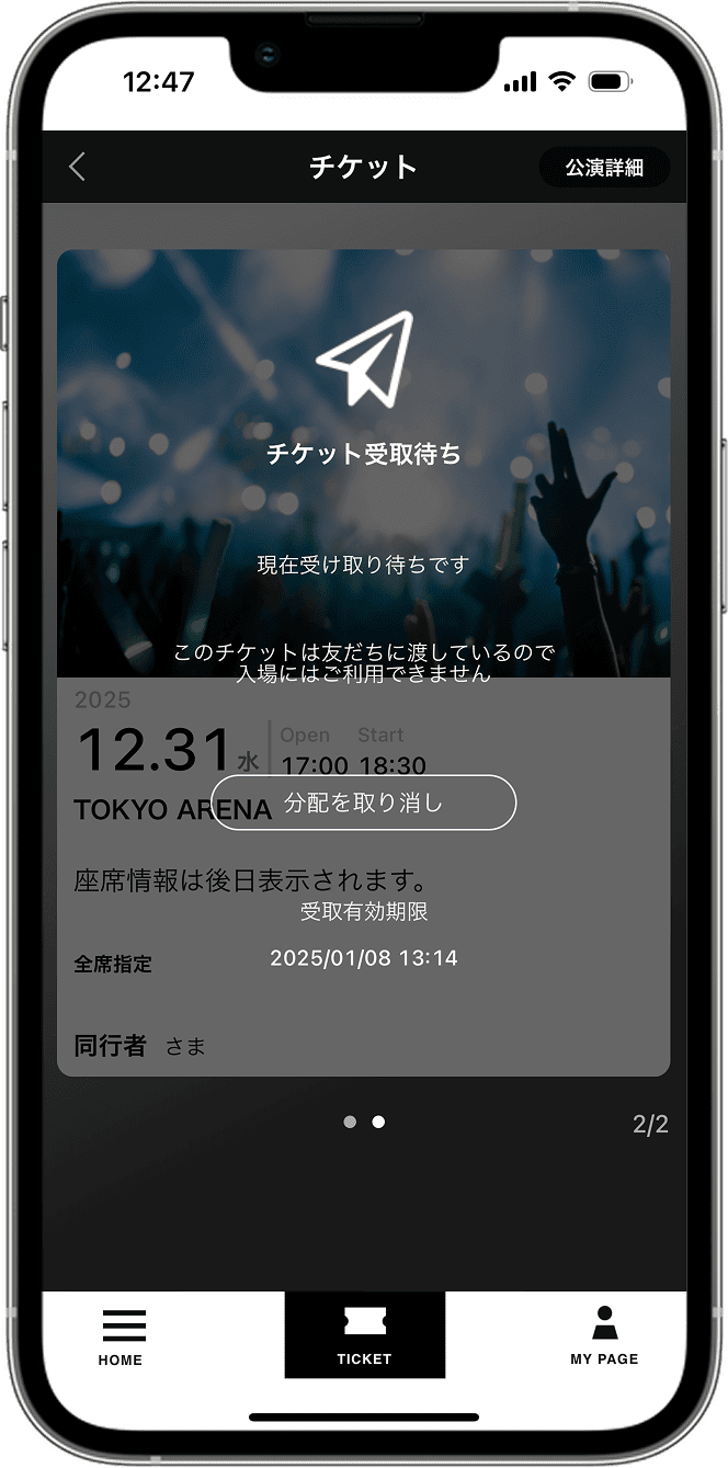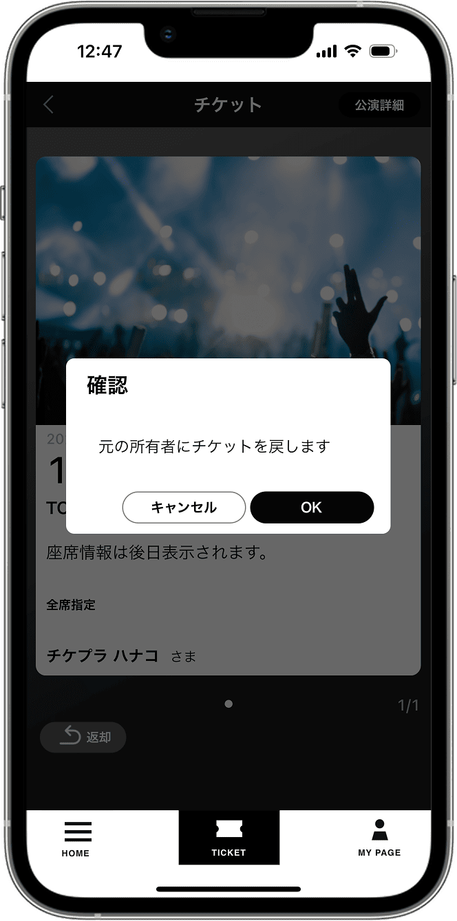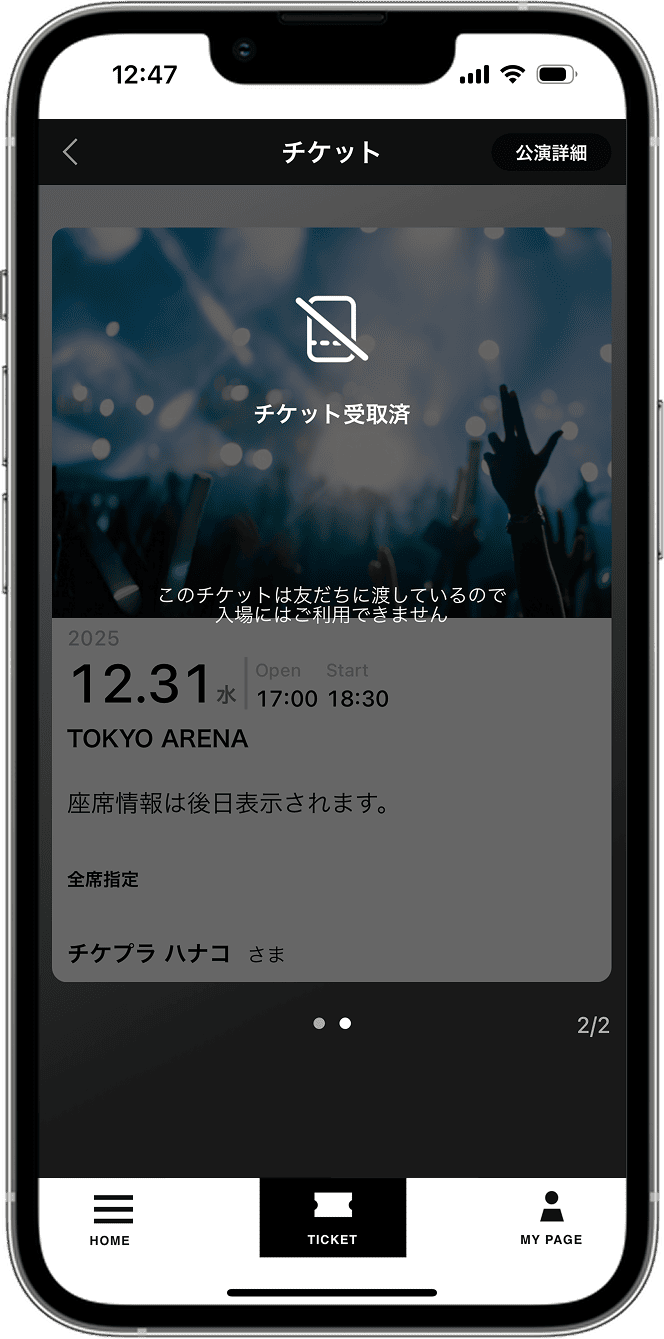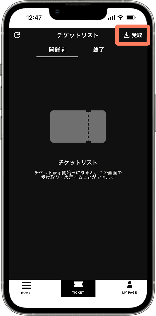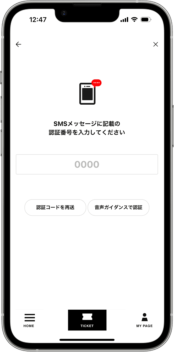 購入したチケットを表示するために、電話番号認証に進んでください。