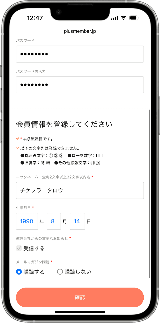 会員情報の入力内容を確認し、登録が完了しましたら、アプリを起動してください。