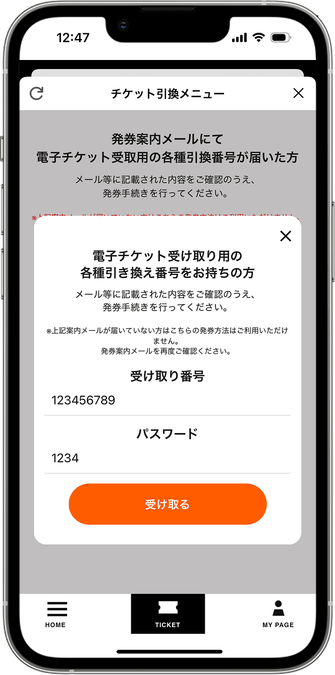 ※必ずご自身の携帯番号で認証してください。ご家族や友人の携帯番号で認証してしまうと、チケットの受け取りができなくなります。