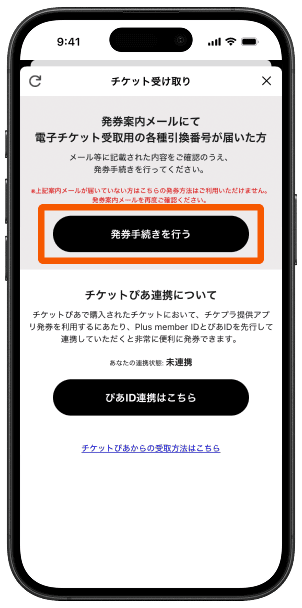 受取案内メールに受取番号の記載がないチケットにも関わらず、自動の受け取り案内がアプリに表示されない方は、応募時と異なるPlus member IDでアプリにログインしている可能性がございます。