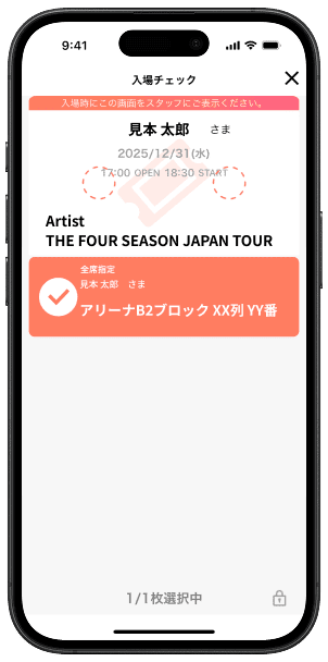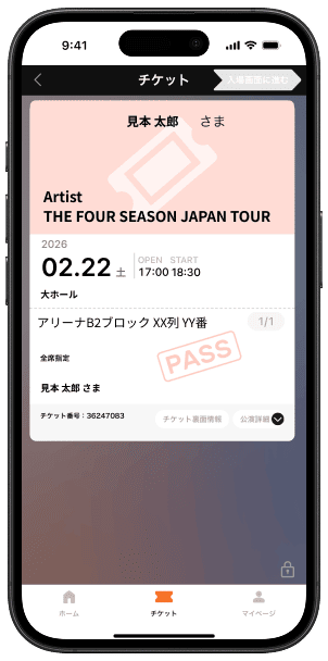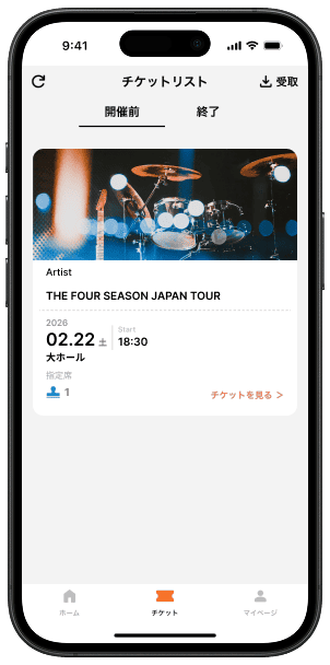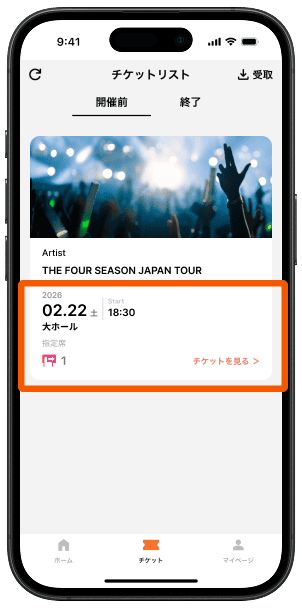 以下のように、チケットリストに該当のチケットが表示されていましたら、発券(受け取り)完了です。