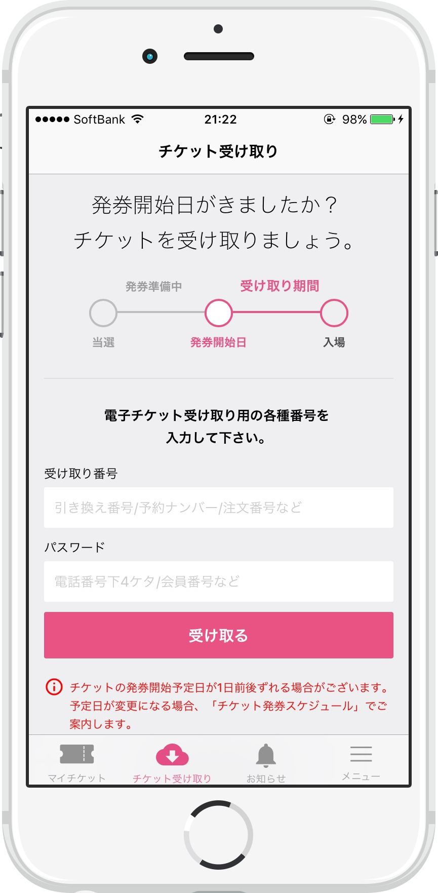 電子チケットの受取り
