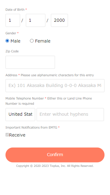 ●E-ticket can only be used by whom has a smartphone with a mobile phone number that can connect to the internet. ●Tablet device and iPod Touch is not compatible for the E-ticket. ●Instructions on how to display your E-ticket will be sent to you via email after your purchase is completed. If you use domain-designated reception or email-designated reception, please set up so that you can receive "plusmember.jp". |