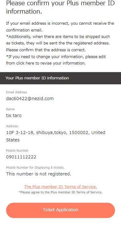 After you complete your purchase, we will contact you through email about ways to display an electronic ticket. For users who set domain and email addresses for the receipt of messages, please adjust your settings so that you can receive messages from "plusmember.jp."
