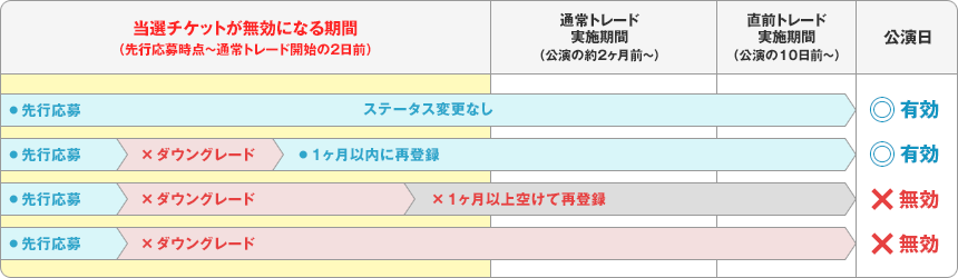 1ヶ月以上ダウングレードとなっていた場合、当選チケットが無効になります。