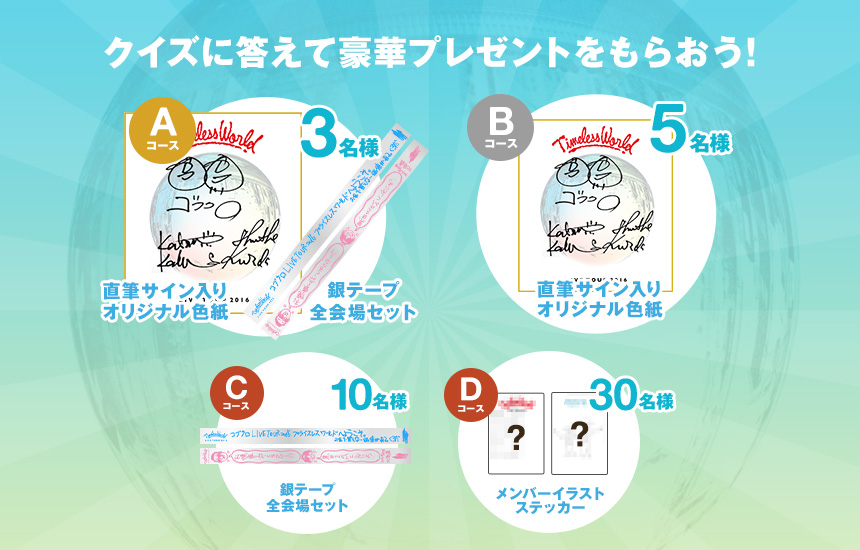 ツアー最終日までに全13問の答えを揃えてください。クイズの答えの一部分がキーワードとなります。