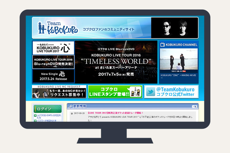 ファン同士の交流の場でもあり、コブクロの二人がログインすることもあります。