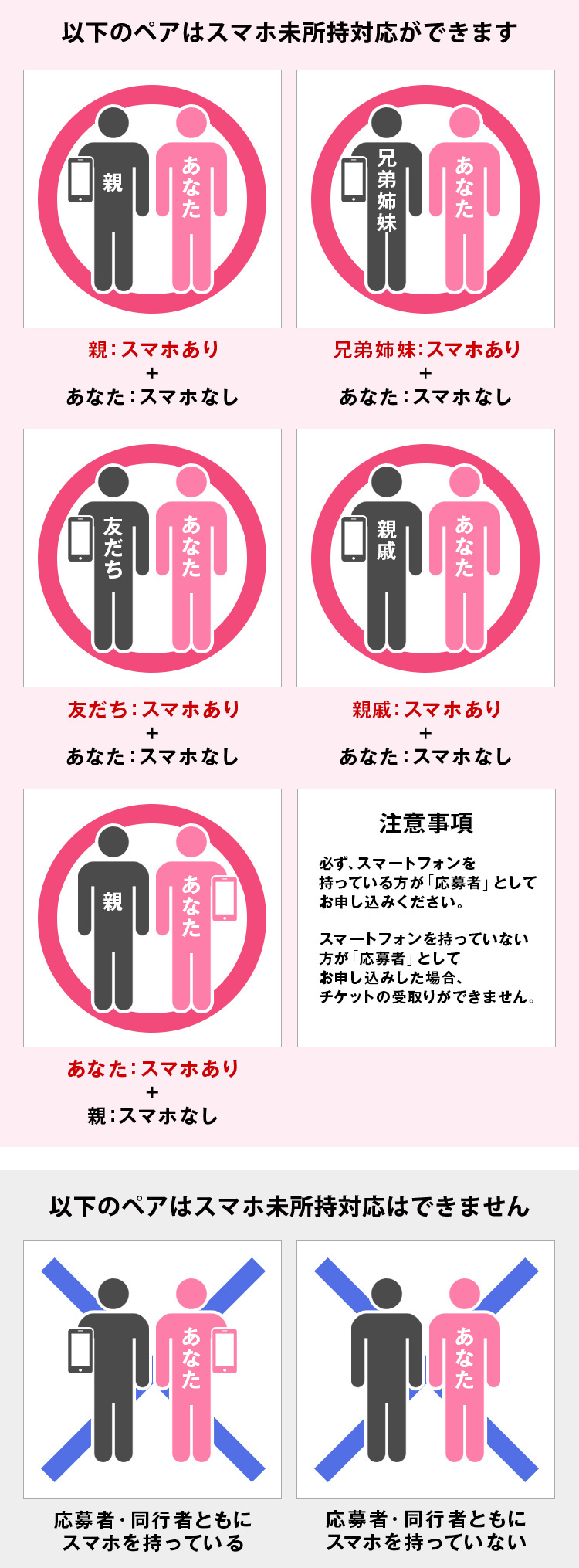 18歳以下の同行者の方がスマートフォンをお持ちでない場合に限り、同行者と一緒にご入場いただけます。