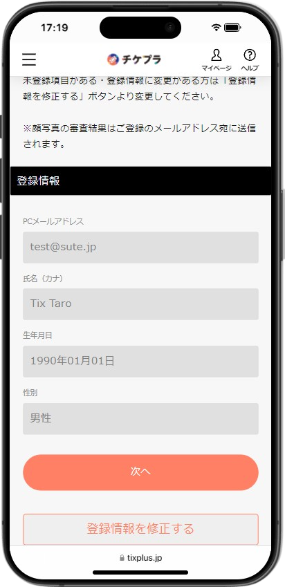 ・If there is no problem with the registration information, please click "次へ".