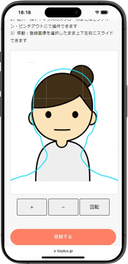 ・Edit so that the face fits in the guide position and register.You can rotate, enlarge, reduce, and move.
