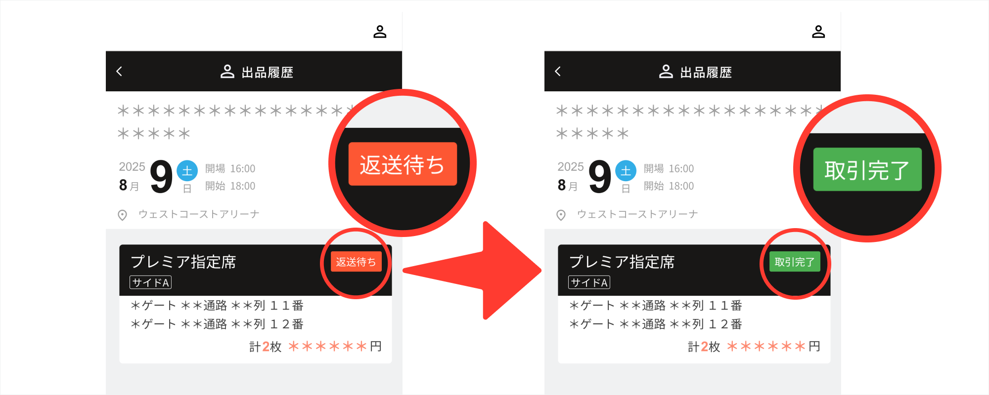 事務局でチケットの返却を確認できない場合には取引が無効になりますのでご注意ください。