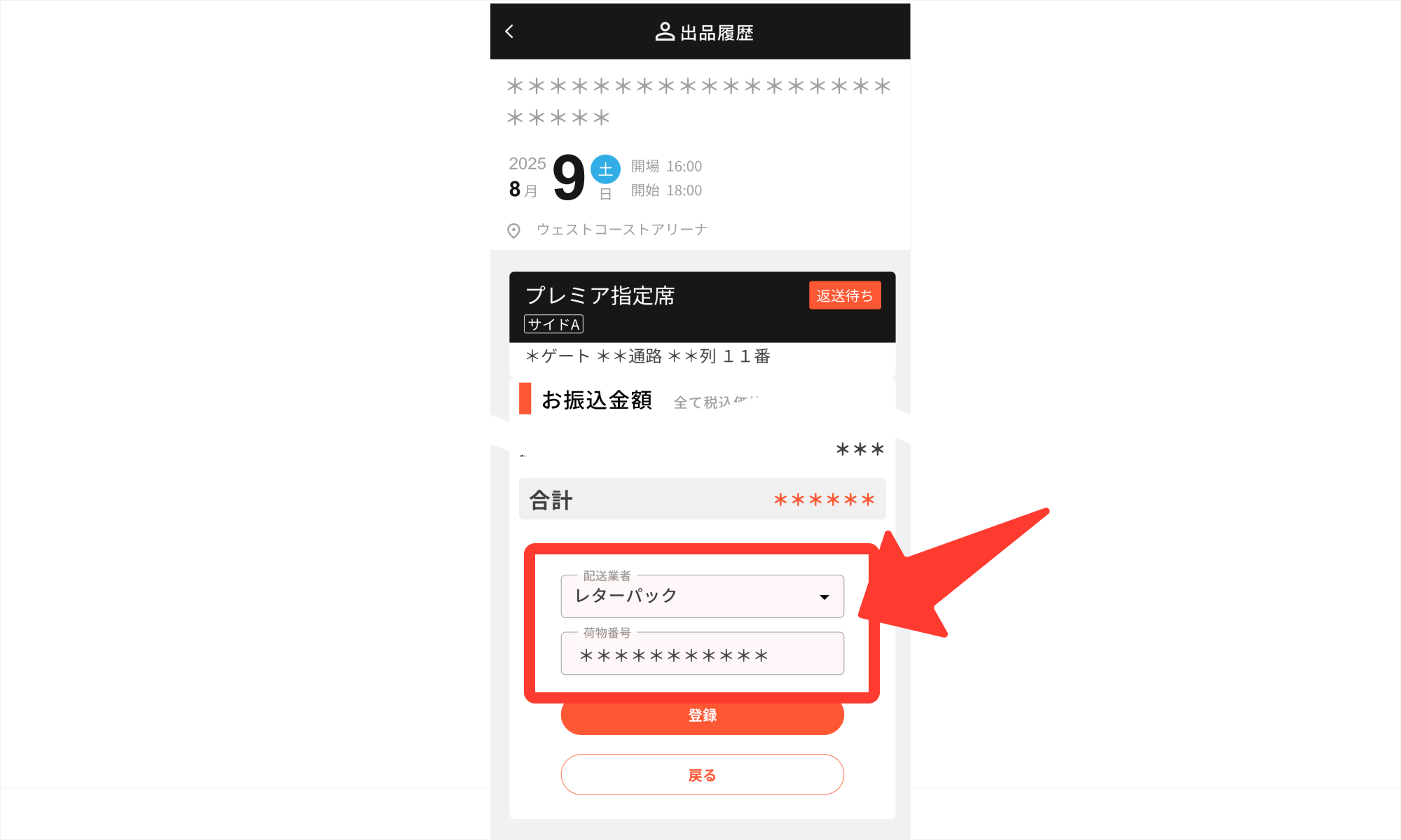 リセール成立後2日以内に紙チケットを事務局へ送付、ならびに送付後に追跡番号の登録をお願いします。