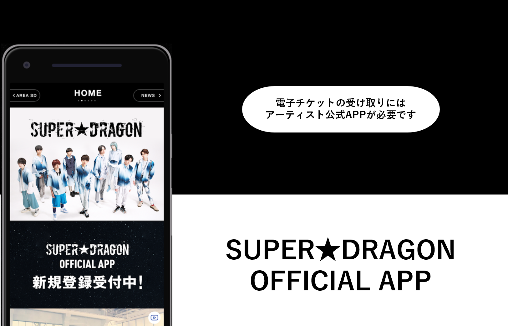- ●SUPER★DRAGON公式ライブでは、SUPER★DRAGON公式グッズ以外の改造サイリウム等の非公式ペンライトや光り物、手作りうちわやメッセージボードのお持ち込みはお断りいたします。