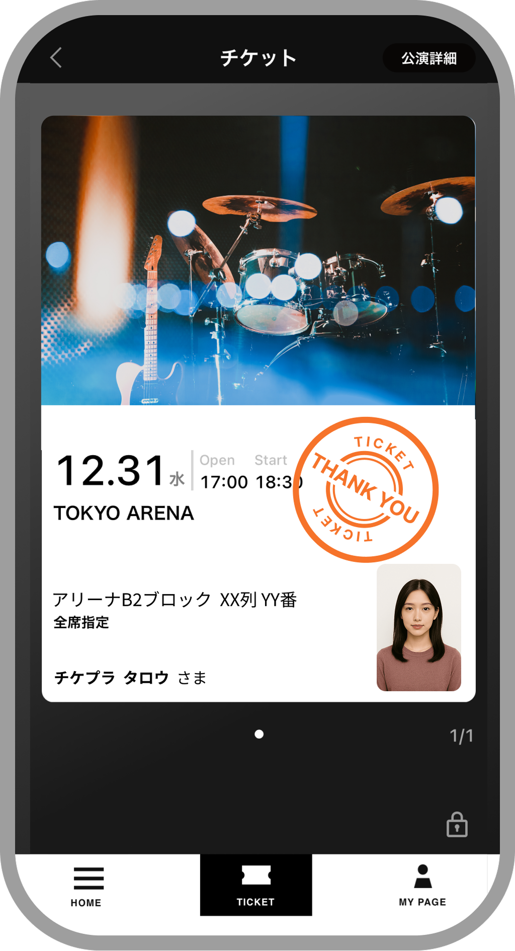 【チケプラアプリ】にて発券される電子チケットに、ご登録いただいた顔写真が表示されます。