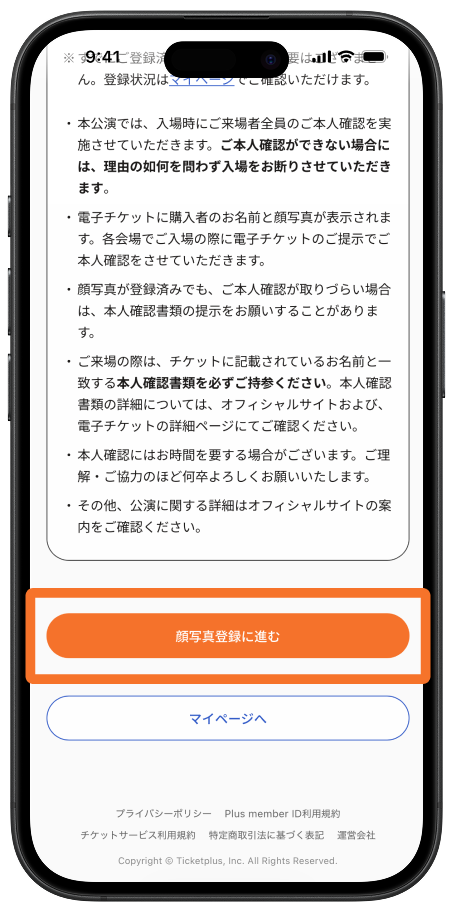 顔写真の登録が必要な公演はオフィシャルサイトや電子チケットの詳細ページなどをご確認ください