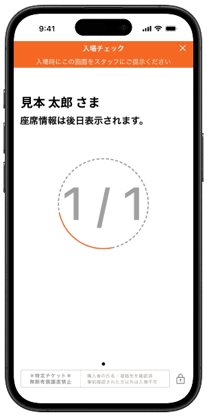 チケット券面を表示して、当日入場口のスタッフにお見せください。