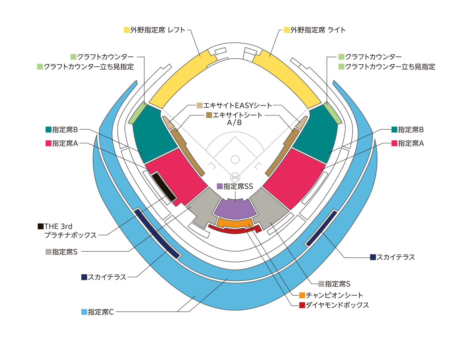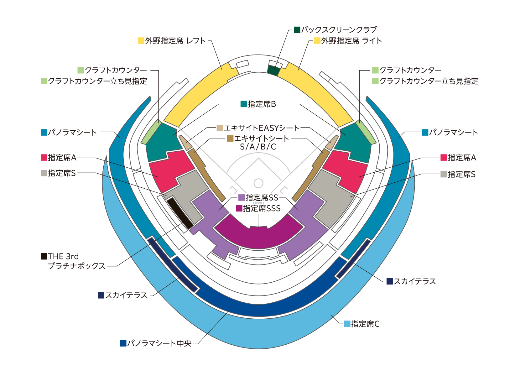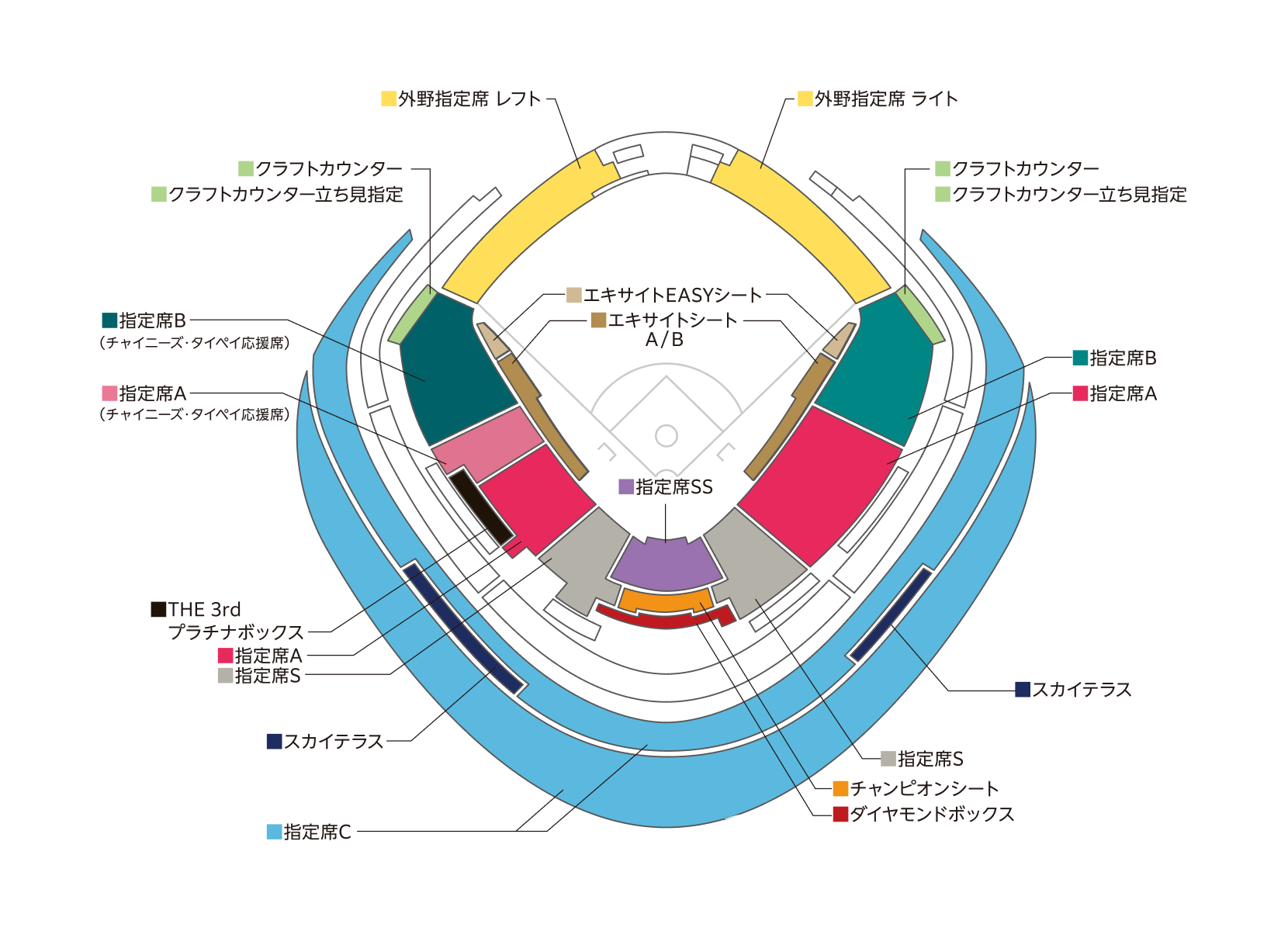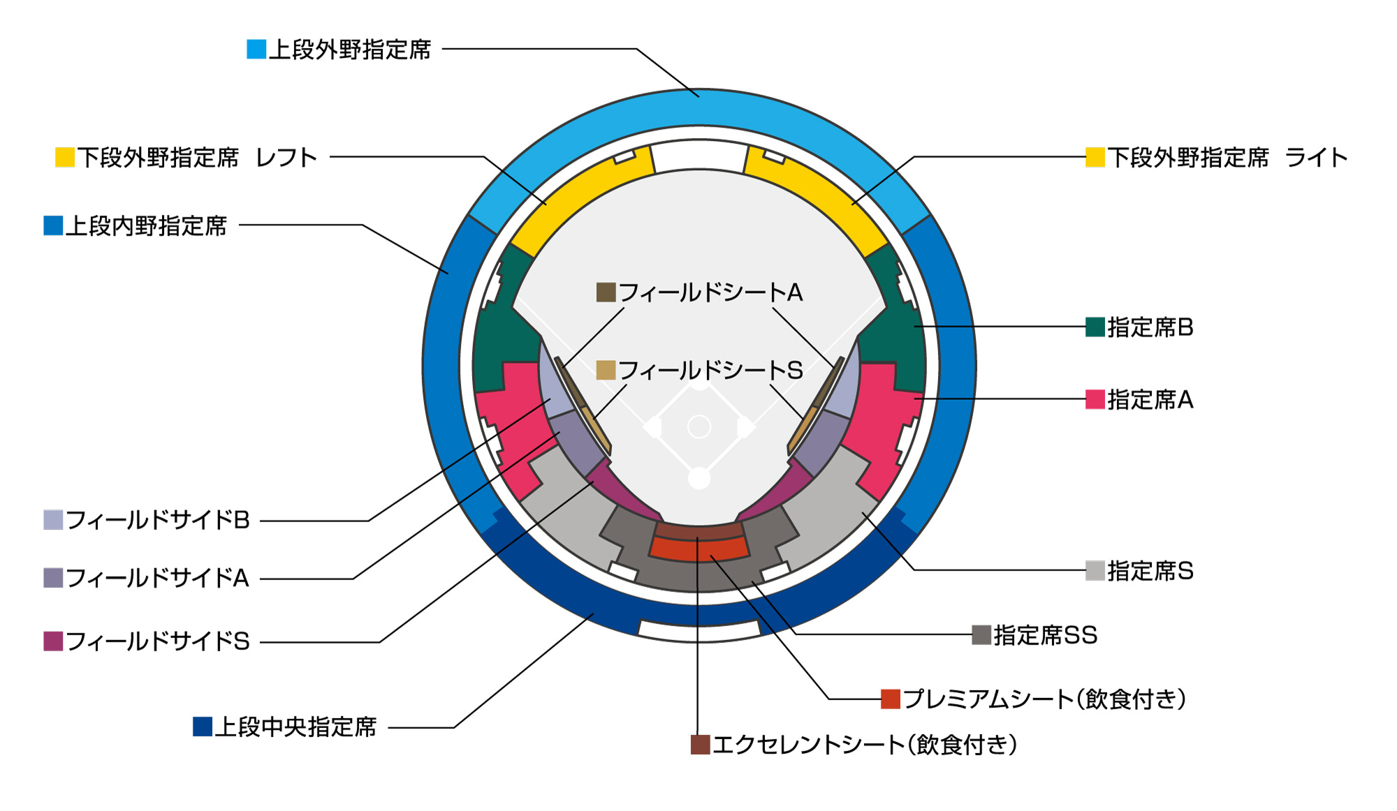 ビスタルーム、外野レストラン席、車いす席はリセール対象外です